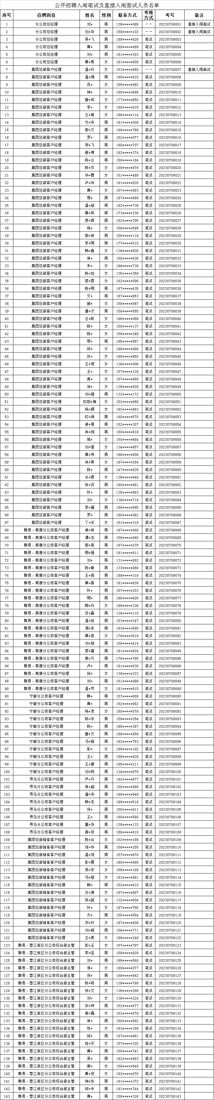 根據(jù)集團公司招聘公告的相關(guān)規(guī)定和程序,經(jīng)過報名、資格審查等工作,現(xiàn)將本次招聘入闈筆試、直接入闈面試人員名單(未進入筆試的人員不另行通知)及有關(guān)事項公告如下: